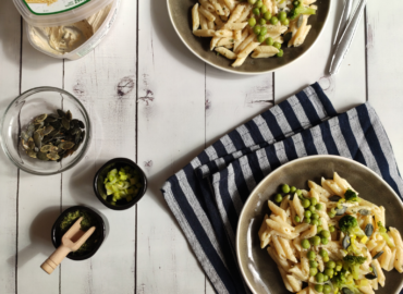 Kremasta tjestenina sa Sana hummusom i zelenim povrćem