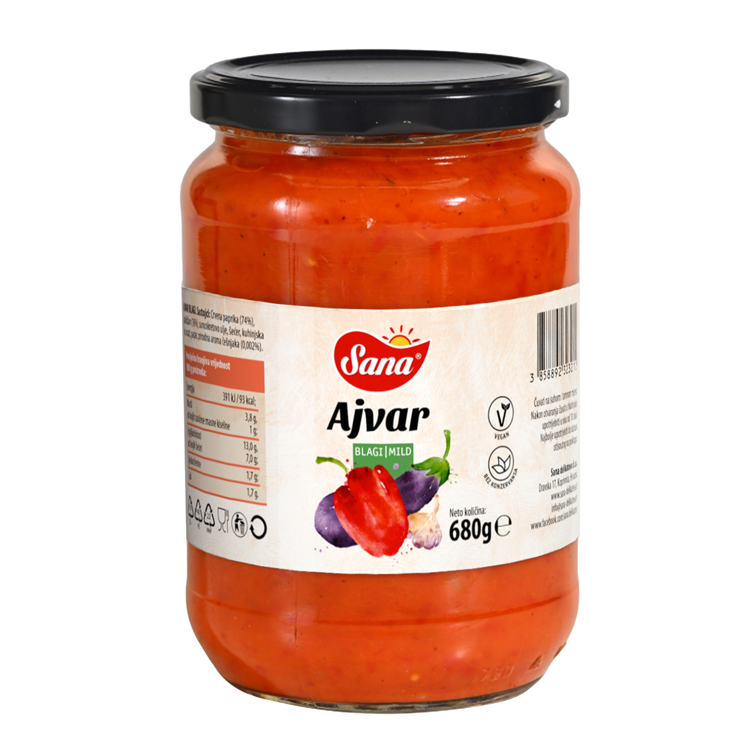 Ajvar blagog okusa, bogate teksture i prirodne arome pečene paprike, savršen za raznovrsnu kulinarsku primjenu.